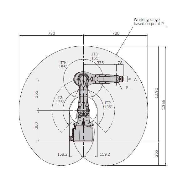 | 手臂前后 (JT2) | ±135 | ||