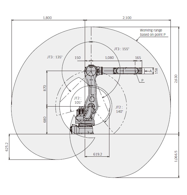 | 手臂前后 (JT2) | +140 - -105 | ||