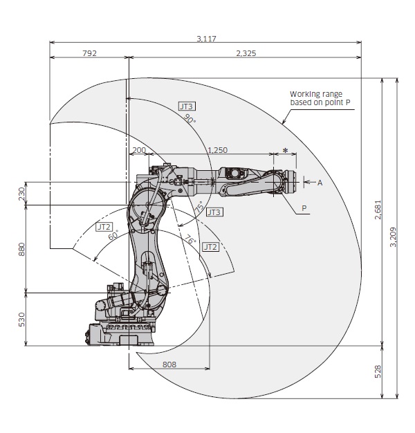 | 手臂前后 (JT2) | +76 - -60 | ||