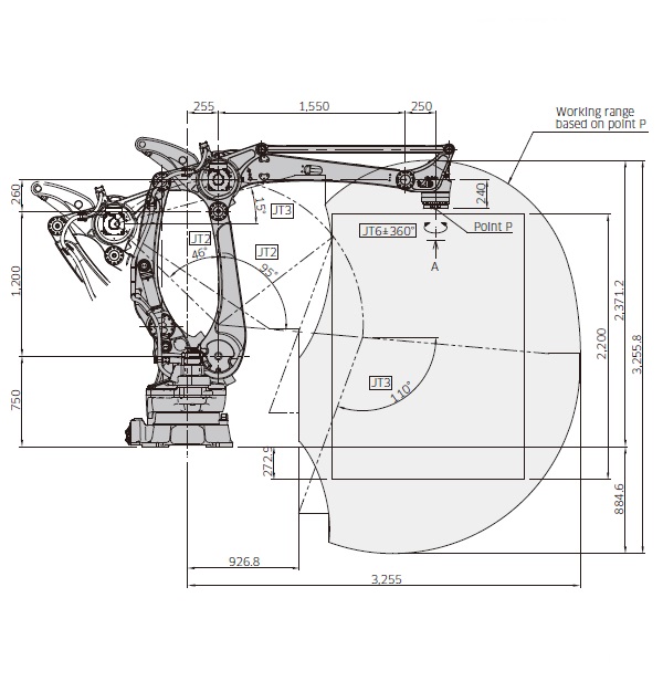 | 手臂前后 (JT2) | +95 - -46 | ||