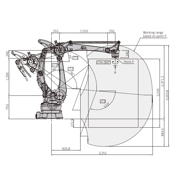 | 手臂前后 (JT2) | +95 - -46 | ||